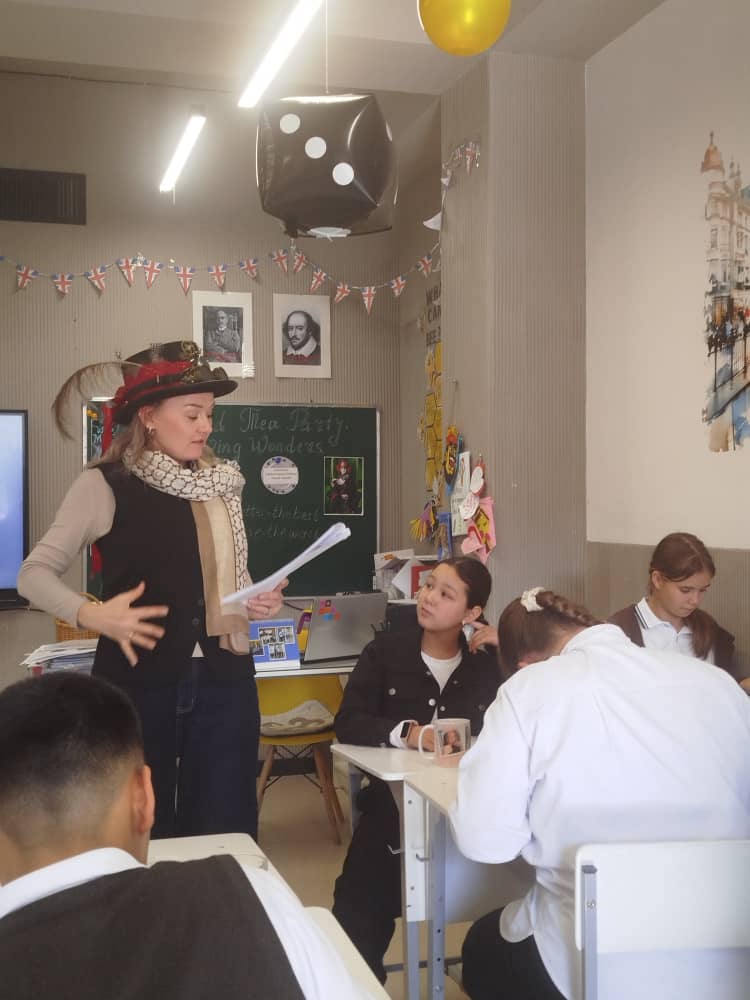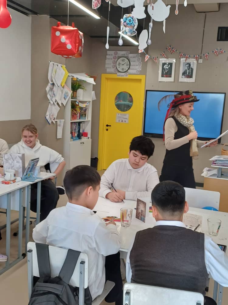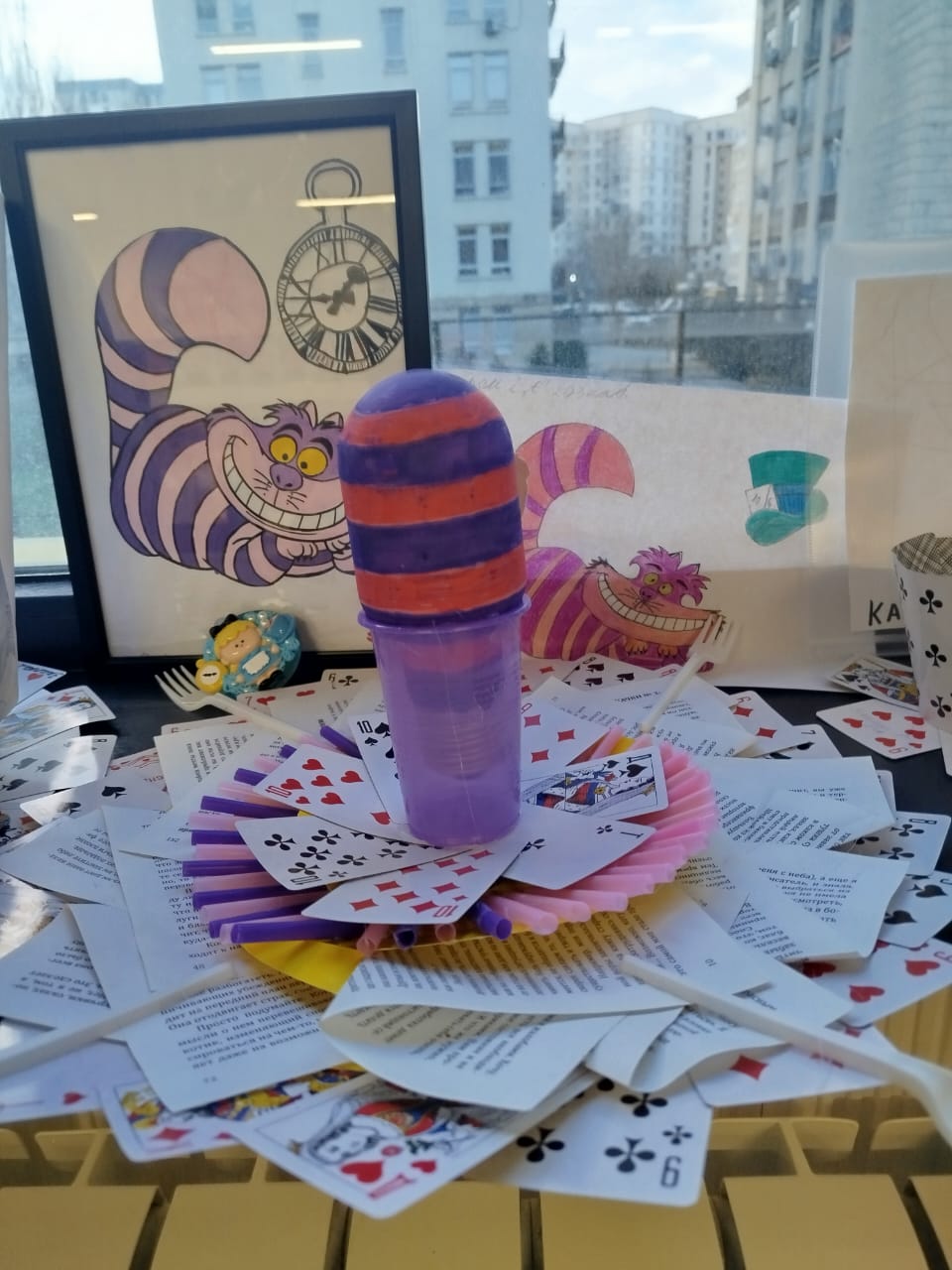 Мы постарались выйти за рамки привычного сюжета. Ребята создавали собственных персонажей, придумывали альтернативные финалы истории и даже отправили Алису в современный «Мир технологий». Конечно, не обошлось и без традиционного чаепития у Безумного Шляпника, где практика разговорной речи проходила в самой непринужденной обстановке.
