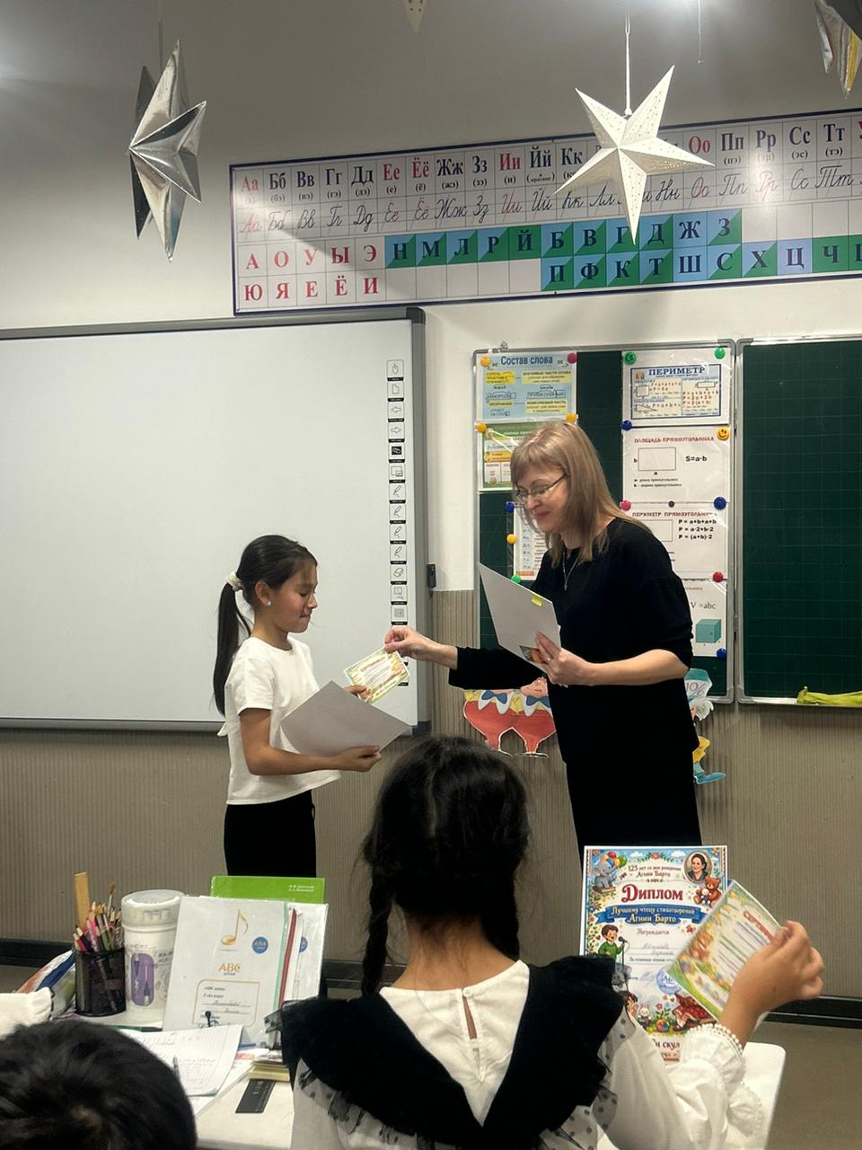 Праздник завершился торжественным моментом: победители и активные участники получили почётные дипломы и памятные подарки. Однако, как отметили учителя, главной наградой для всех стала та особенная, теплая атмосфера, которую создают стихи Агнии Барто. Руководитель ШМО начальной школы Талканбаева Марина Вячеславовна подчеркнула, что произведения Барто — это не просто литература, а настоящие уроки доброты и сопереживания. По её словам, вдохновение, с которым дети читали стихи, стало лучшей оценкой педагогической работы и еще раз напомнило о важности сохранения традиций душевного чтения.